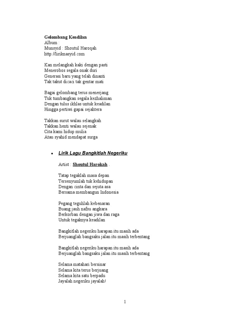 Gelombang Keadilan by Shoutul Harokah. Hingga pertiwi gapai sejahtera. Usage Public Domain Topics nasyid.