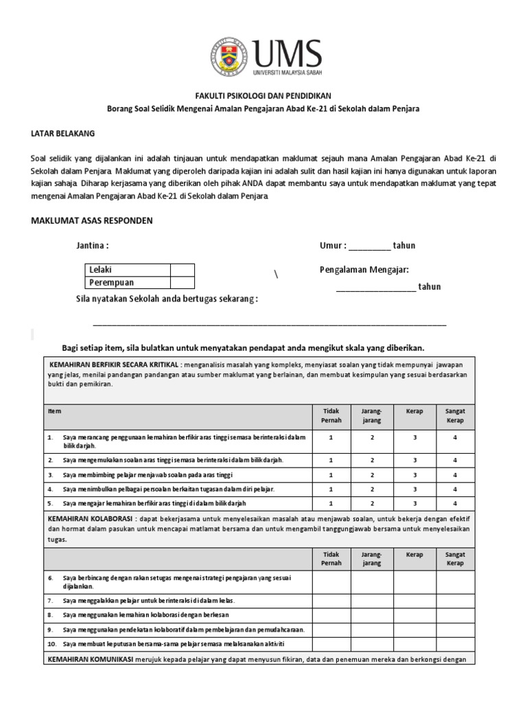 PADA 28-30 MAC 2013 PENDANG LAKE RESORT PENDANG KEDAH Pada akhir program para pelajar diharapkan dapat menjawab borang sooal selidik yang disediakan. Course Title PENDIDIKAN GC6033. Kegiatan ekonomi tradisional contoh borang soal selidik kajian.